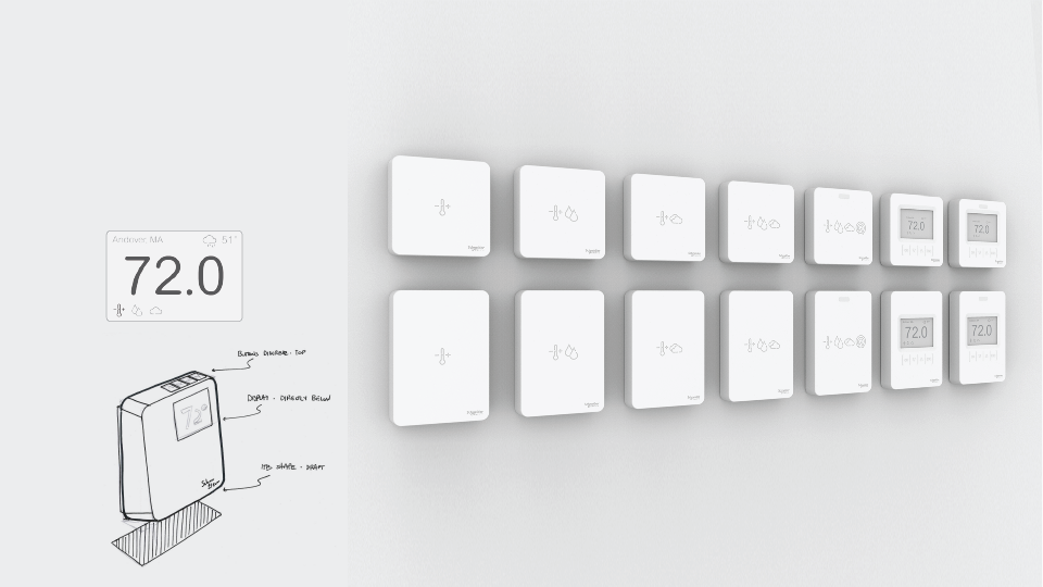 Industrial design proposal for HVAC temperature, humidity, CO and CO2 sensors for private space environments throughout North America and Europe.